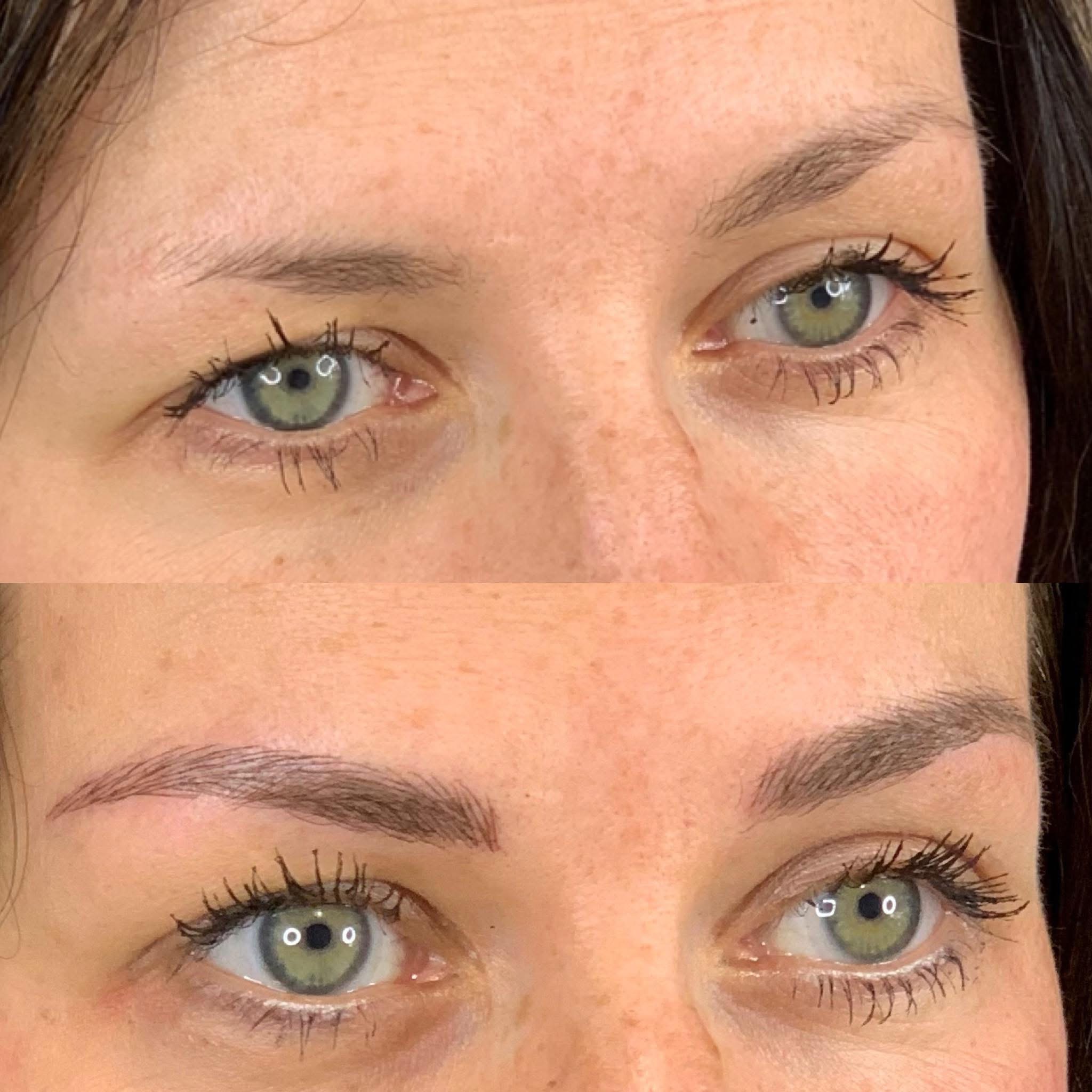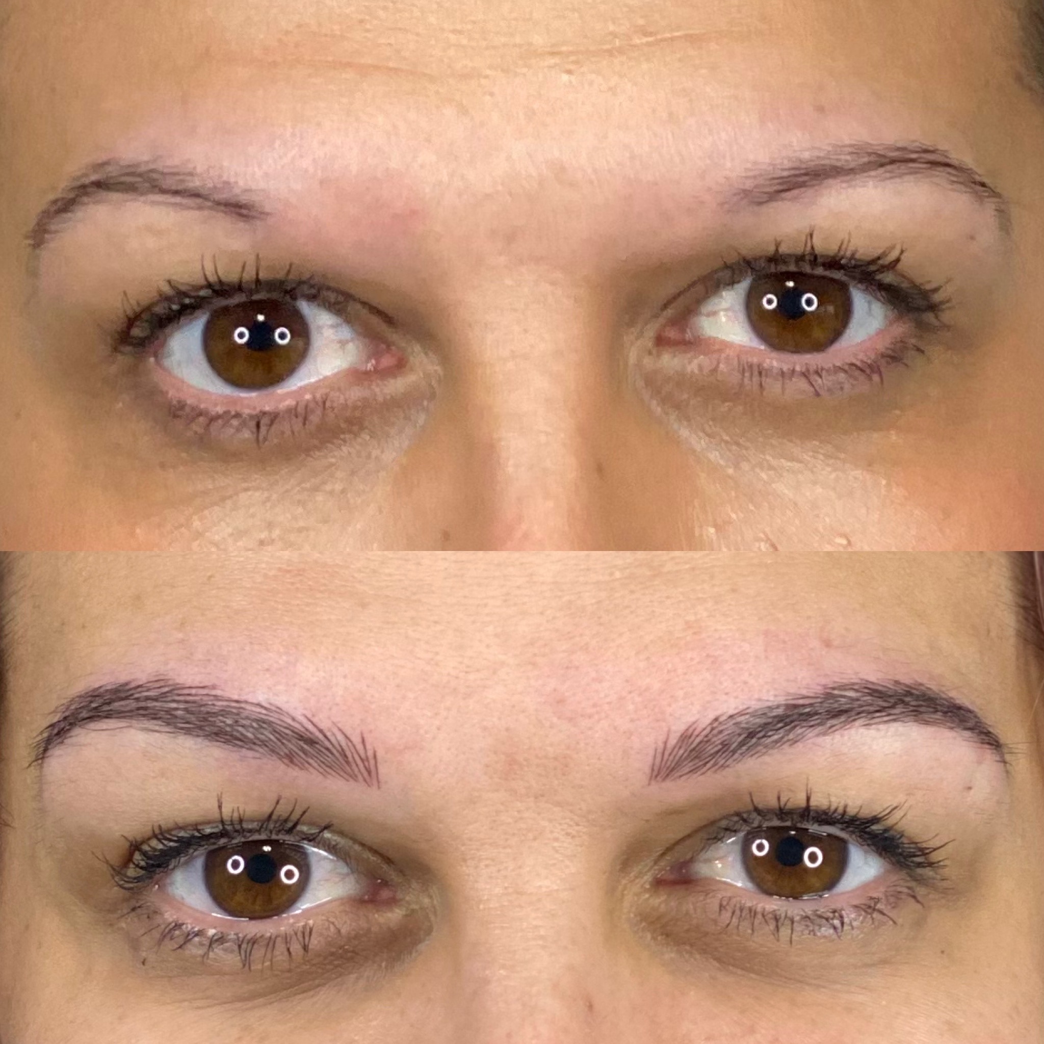 Before & after results showcasing Microblading and Nano Brow techniques.
